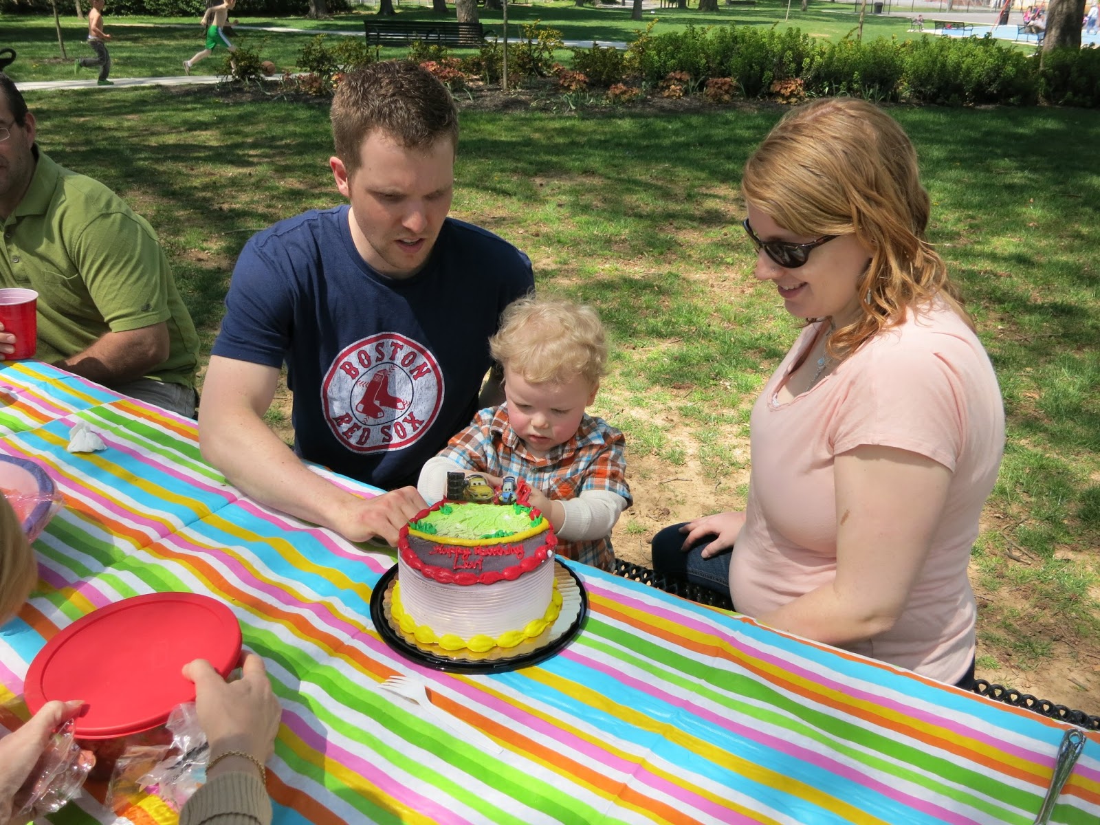 We had his second birthday party over the weekend, with a picnic in the park and delicious pork made by Tim, and some of my family, our neighbors and some friends just handing out, playing some bocce ball and